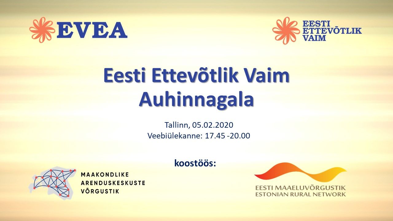 5.02 toimus otseülekanne auhinnagalast „Eesti Ettevõtlik Vaim 2019″ restoranis Maikrahv, kus me tunnustasime eelmise aasta tublimaid väikeettevõtjaid. Lisaks valisime möödunud aasta Ettevõtluse Sõbra tiitlisaaja. Otseülekannet aitas teha Põllumajandusuuringute Keskuse Maaelu võrgustikutöö osakond.